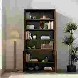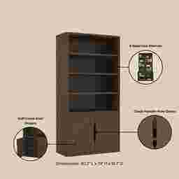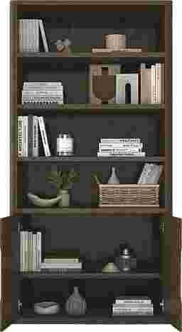 The Shadebooks IV brown bookcase brings grounded elegance and tactile richness to modern interiors. With a focus on sculptural form and refined simplicity, each piece features clean lines, tailored silhouettes, and signature cutout pulls that double as subtle design statements. This bookcase is thoughtfully crafted with adjustable shelving and ample storage, offering functionality without compromising on style. Finished in warm, wood-grain tones, Shadebooks is designed to blend seamlessly into any space. Timeless yet distinctive, this piece offers a harmonious balance of quiet beauty and everyday utility. Customer assembly is required.