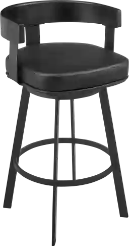 Upgrade your space with the sleek style and charm of the Shadefly I black counter height stool. Inspired by mid-century modern design principles, this stool offers an elevated appearance and exceptional comfort. A refined barrel back envelopes your body, and the thick, high-density cushion offers extraordinary support. The generously padded seat is wrapped with luxurious faux leather to offer a premium seating experience. It lends a sophisticated touch to your kitchen island, pub table, home bar, or adjustable desk. The stool includes a built-in circular footrest, and its smooth, 360-degree swivel function enables you to change direction with ease and engage with everyone around you. Customer assembly is required.