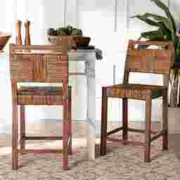 Exhibit an appreciation for exotic artistry in your space with the lovely Shadepaw light brown counter height stool. This bohemian piece consists of a solid mango wood frame embellished with woven seagrass. The backrest and seat feature a standout woven design rich with sleek geometric flair for a remarkable display. The Shadepaw features an ergonomic footrest for added comfort and support. Seagrass is a product of nature and may have variations in areas such as, but not limited to, color, pattern, grain and texture. The hair-like strands of rattan/rattan-like fiber are common due to the nature of the material. Customer assembly is required.