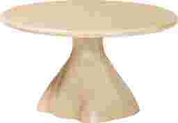 A round tabletop is an excellent choice for improving traffic flow, as it eliminates sharp corners that can obstruct movement in busy areas. This shape is particularly effective when paired with L-shaped sectionals, as it helps soften the room's straight lines and creates a more inviting atmosphere. The irregularly shaped pedestal base of this contemporary piece adds a unique architectural element, providing a "raw" aesthetic that is visually interesting from every angle.