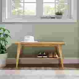 If your design destination is sleek, minimalist, and effortlessly stylish, look no further than this Shadeway entry bench. Tapered legs and a simple silhouette lend the piece its signature Japandi aesthetic while its versatile frame and suspended storage shelf marry function and form. Host your heels, decorative pillows, and grab-and-go essentials with effortless elegance, and use the upholstered cushion to sit and put on shoes or do last-minute touch-ups. With its durable veneer build and trendy yet timeless frame, this accent bench is here to stay. Pair it with the matching side table, TV stand, or coffee table to curate a cohesive, contemporary space. Customer assembly is required.