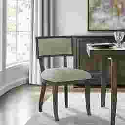 Elevate your dining experience with the Shadowtime beige dining chair, set of 2. This set of two upholstered dining chairs features a sculpted silhouette with an open split-back design that enhances breathability and adds visual lightness. Crafted with solid wood and plywood frames, each chair offers ergonomic comfort with a gently curved padded back and a cushioned seat supported by durable webbing. Customer assembly is required.