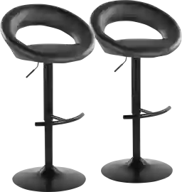 Add character to your space with the sleek Shallowe II Black Adjustable Swivel Barstool, Set of 2. The Shallowe features a unique circular faux leather upholstered seat with an adjustable 360-degree swivel base that is sure to catch anyone's eye. Perfect for any bar or dining area, this bar stool comes in a variety of upholstery colors and finishes that are sure to elevate any space. Customer assembly required.