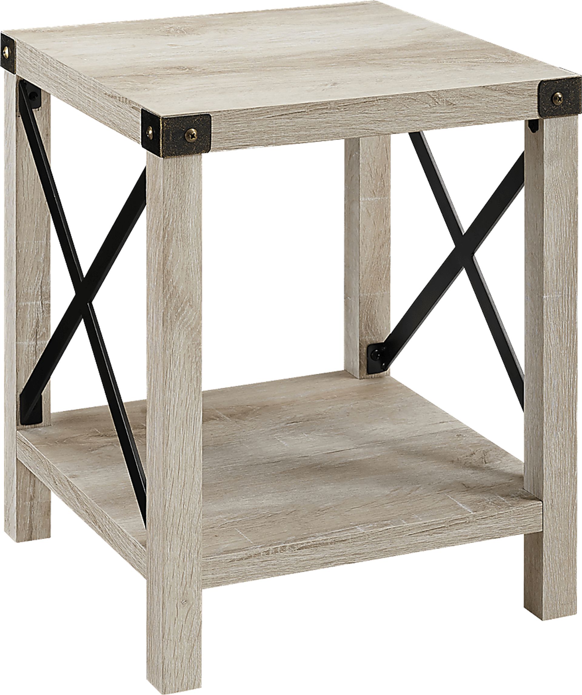 Perfect your bedroom, the Shamblin is an urban industrial side table featuring a metal x-shaped frame. This rustic styled accent table gives an industrial look to any room, from your bedroom to your living room. With accents of metal throughout starting from each table top corner to the x design on the two sides of the table. These black painted metal pieces work against the solid design, while the built-in shelf and table top provide function. Customer assembly is required.