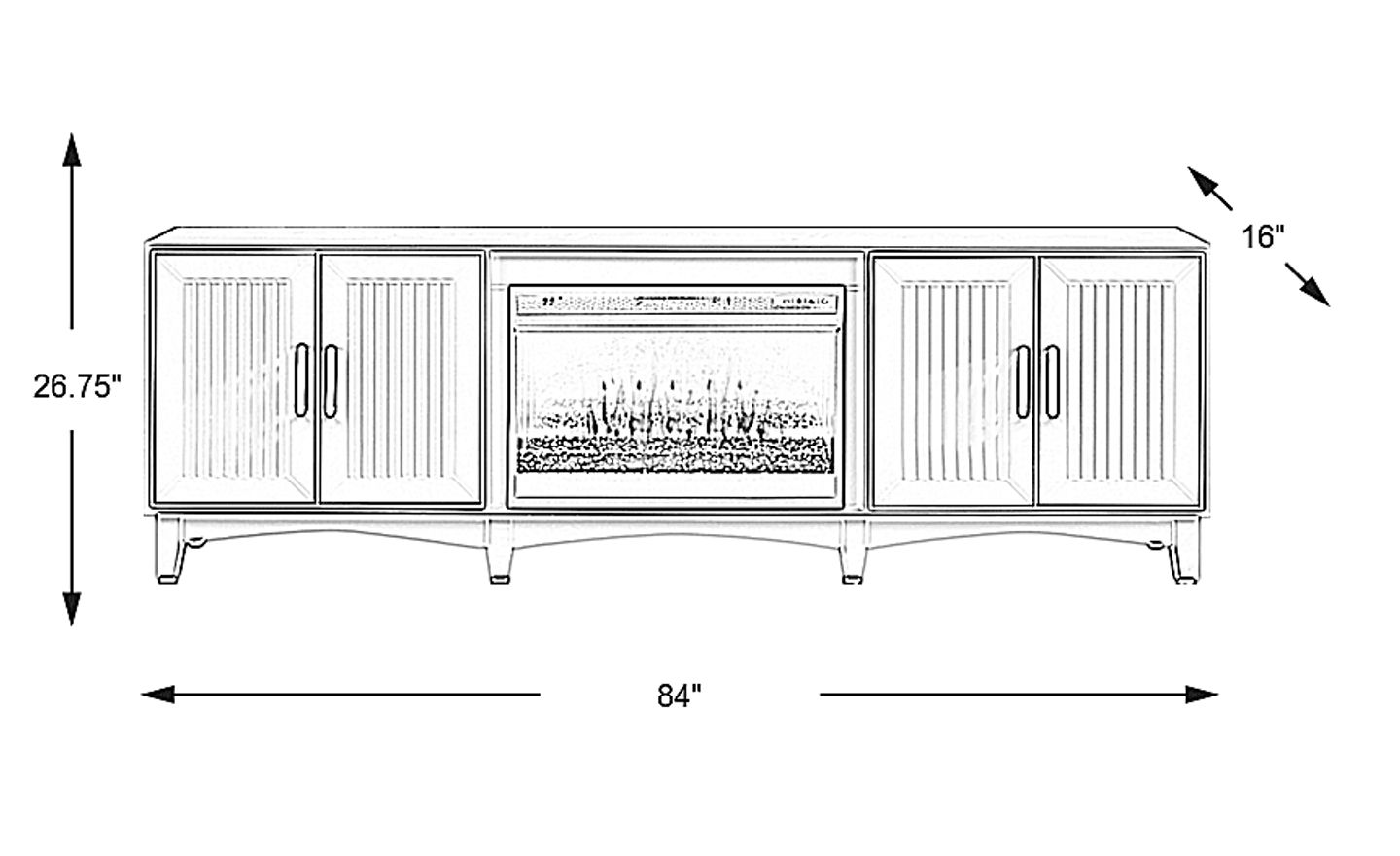 The clean lines and minimalist sensibilities of the Shanewood console bring effortless style to your main entertainment space. This contemporary piece in blue shines with simple, thoughtful design details like reeded cabinet doors and handsome bar pull hardware in black. Underneath, a subtly curved dust skirt connects the tapered legs on either side. Behind the doors of either cabinet, two shelves make ideal storage for photo albums, movies, games, and more. Included is an electric fireplace. Ambient lighting creates added depth with four color changing options across a gorgeous display of LED lights. A convenient remote controls glow levels, heat and includes a built-in timer.