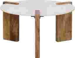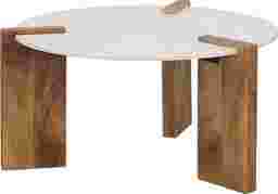 With three bold legs and a clean-lined top, this two-tone Shantivanna coffee table brings a stylish look to your living room seating ensemble. The round tabletop is crafted from naturally sourced white marble, while the solid mango wood legs come in a rich brown hue for a rustic touch. Keep decor and magazines on top for a casual feel, or rest trays of snacks and drinks whenever you're entertaining guests. Customer assembly is required.