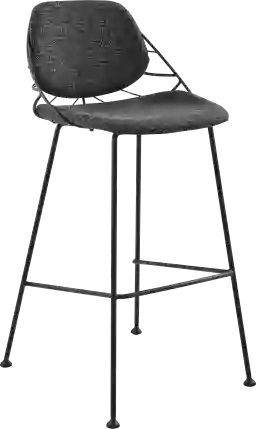 Inspired by nature's geometric simplicity, the Sheffer black bar stool brings Art Deco design to the twenty-first century. Although delicate in appearance, the strong steel legs and leaf back design make for a powerful statement. The seating itself is composed of fabric over cushions for a sleek finish. Customer assembly is required.