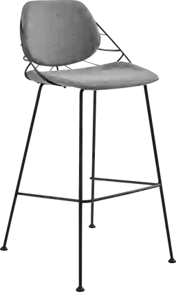 Inspired by nature's geometric simplicity, the Sheffer light gray bar stool brings Art Deco design to the twenty-first century. Although delicate in appearance, the strong steel legs and leaf back design make for a powerful statement. The seating itself is composed of fabric over cushions for a sleek finish. Customer assembly is required.