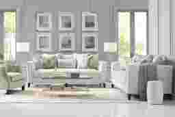 The classic charm and modern refinement of a Hamptons retreat come to life in the Shelton collection from Cindy Crawford Home, where plush textures, refined details, and effortless elegance offers an invitation to cosmopolitan coziness. Upholstered in a soft ivory chenille, this traditional living room features stylish tuxedo arms and deep tufting for a luxurious touch. Cloud-like seat cushions make for indulgent relaxation, while complementing accent pillows add extra comfort and sophistication. Tall, tapered legs in a dark finish offer a perfect finishing contrast for the ensemble. Upholstery: 100% Polyester. Cleaning Instructions: Use water based cleaning agents or foam. Tables, lamps, and chair not as shown in room image. Matching chair included.
