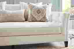 The classic charm and modern refinement of a Hamptons retreat come to life in the Shelton collection from Cindy Crawford Home, where plush textures, refined details, and effortless elegance offers an invitation to cosmopolitan coziness. Upholstered in a soft ivory chenille, this traditional sofa features stylish tuxedo arms and deep tufting for a luxurious touch. The cloud-like seat cushion makes for indulgent relaxation, while complementing accent pillows add extra comfort and sophistication. Hidden beneath the sofa's cushion is a queen Nature's Bed gel foam sleeper mattress that easily transforms your living room into a cool and comfortable sleeping space for overnight guests. Tall, tapered legs in a dark finish offer a perfect finishing contrast for the piece. Upholstery: 100% Polyester. Cleaning Instructions: Use water-based cleaning agents or foam.