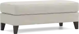 The classic charm and modern refinement of a Hamptons retreat come to life in the Shelton collection from Cindy Crawford Home, where plush textures, refined details, and effortless elegance offers an invitation to cosmopolitan coziness. Upholstered in a soft ivory chenille, this traditional ottoman features a cloud-like top cushion for indulgent relaxation, while its sleek rectangular shape and tall, tapered legs in a dark finish create a sophisticated silhouette. Upholstery: 100% polyester.