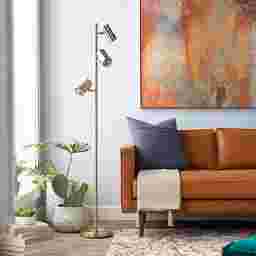 Light up your home with the modern style Sheltone Hills floor lamp. Constructed of gold finished metal, this lamp stands 65 inches tall for maximum illumination in any room. With its contemporary design, it is sure to be a stylish addition to your living space. Brighten up your interior design today with this elegant floor lamp! Partial assembly may be required.