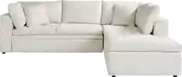 This sectional is upholstered in 100% polyester chenille, a material chosen for its durability and resilience in high-traffic homes. To keep the off-white fabric looking its best, our care guidelines recommend regular vacuuming with an upholstery attachment to prevent dust from settling into the weave. For spills, use only water-based cleaning agents or foam. Avoid harsh chemicals, as they can damage the soft texture of the chenille fibers.