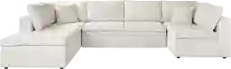 Take it easy in style when you bring home the Sheridan Place sectional from Cindy Crawford Home. Upholstered in cozy off-white chenille fabric, this piece features an armless loveseat nestled between a left arm facing chaise sofa and a right arm facing loveseat. The beautiful appearance of the sectional is highlighted by tufting on the seat cushions and loose back cushions that add a distinct casualness to the piece. Upholstery: 100% Polyester. Cleaning Instructions: Use water based cleaning agents or foam.