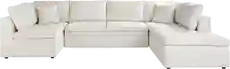 Take it easy in style when you bring home the Sheridan Place sectional from Cindy Crawford Home. Upholstered in cozy off-white chenille fabric, this piece features an armless loveseat nestled between a right arm facing chaise sofa and a left arm facing loveseat. The beautiful appearance of the sectional is highlighted by tufting on the seat cushions and loose back cushions that add a distinct casualness to the piece. Upholstery: 100% Polyester. Cleaning Instructions: Use water based cleaning agents or foam.