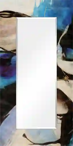 The Shira mirror is a frame-less, free floating, tempered glassthat was inspired by the French technique of Verre Eglomise in which artist's literally painted the back of clear glass so that when viewed from the front the painting is brought to life under the depth of the glass. This piece of a beautiful colorful abstract takes that same tempered glass and displays a beveled mirror in front of it. Four strong steel hangers are attached to the back of the mirror for a quick and easy vertical or horizontal installation.