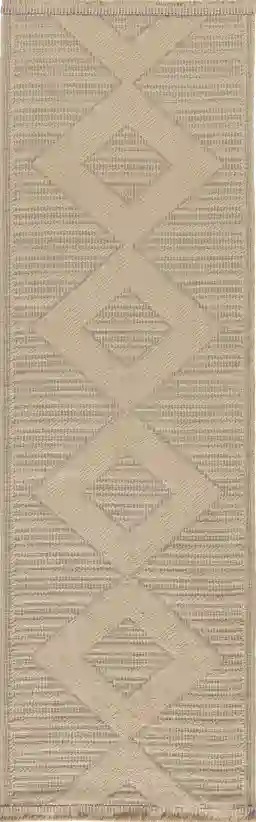 The Shorewell rug collection combines the rustic charm of natural fibers with the sophisticated techniques of modern rug weaving. These natural jute rugs are reinforced with a blend of cotton and poly-acrylic yarns to simplify cleaning just toss into your washing machine on cold and line dry. With a non-slip back that adds an extra layer of safety on hardwood floors, these geometric rugs are great in busy areas of your home including the kitchen, living room, entryway, and dining room. Includes a short fringe at both ends. With this geometric rug from the Shorewell collection, you can have sophisticated style thats also ultra-easy to clean. This modern flat weave design features a chic center diamond in soft beige, which is finished at both ends with a short, twisted fringe