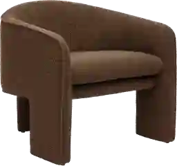 Absolutely. While designed for the living room, the Shryrock chair’s warm brown tone and playful sculptural shape make it a versatile "statement piece" for a bedroom corner or a stylish home office. Its stationary block legs provide a stable, grounded base that works equally well on hardwood floors or plush area rugs, adding a layer of cozy, contemporary texture to any environment.