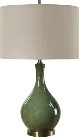 The distressed emerald finish of this lamp serves as a "sophisticated neutral" that complements a variety of casual and transitional styles. It pairs beautifully with natural wood tones, cream upholstery, and brass hardware. For a cohesive look, we recommend echoing the green hue in other room accents—such as patterned rugs or toss pillows—to tie the space together and create a professionally curated feel.