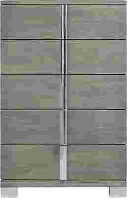 The beauty of the Siena chest lies in its details. Though it boasts a clean, modern design, this spacious chest is also bursting with thoughtful design elements such as the lead-free polished aluminum hardware and the French dovetail construction that strengthens each of the five drawers. And since this piece is crafted of 100% ecofriendly solid wood with a water based brushed gray finish, you will feel great about placing this incredible piece in your home.
