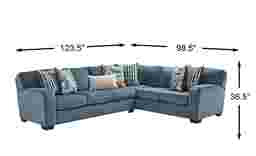 Inviting textures and casual style make the Sienna Way sectional a welcoming piece for rest and reconnection. This contemporary sofa brings all the comforts of a 6-seat sectional with the chic of radius arms and refined blue chenille. When it's time to tidy up for the next get together, this piece is easy to clean thanks to removable back and seat cushions. Square legs in a classy brown finish enhance the overall look with a strong, confident style. Upholstery: 100% Polyester.