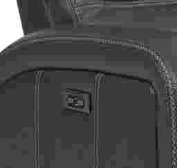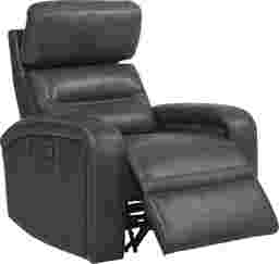 Get ready to be pampered from head to toe with the Sierra Madre dual power recliner. At the touch of a button the padded headrest and padover chaise footrest can be adjusted for customizable comfort while a USB port on the outside of the arm keeps devices charged with ease. Gray top grain leather upholstery where the body touches is supple and luxurious. Baseball stitching details provide the perfect finishing touch. Top Grain Leather Where The Body Touches and Vinyl sides and backs.