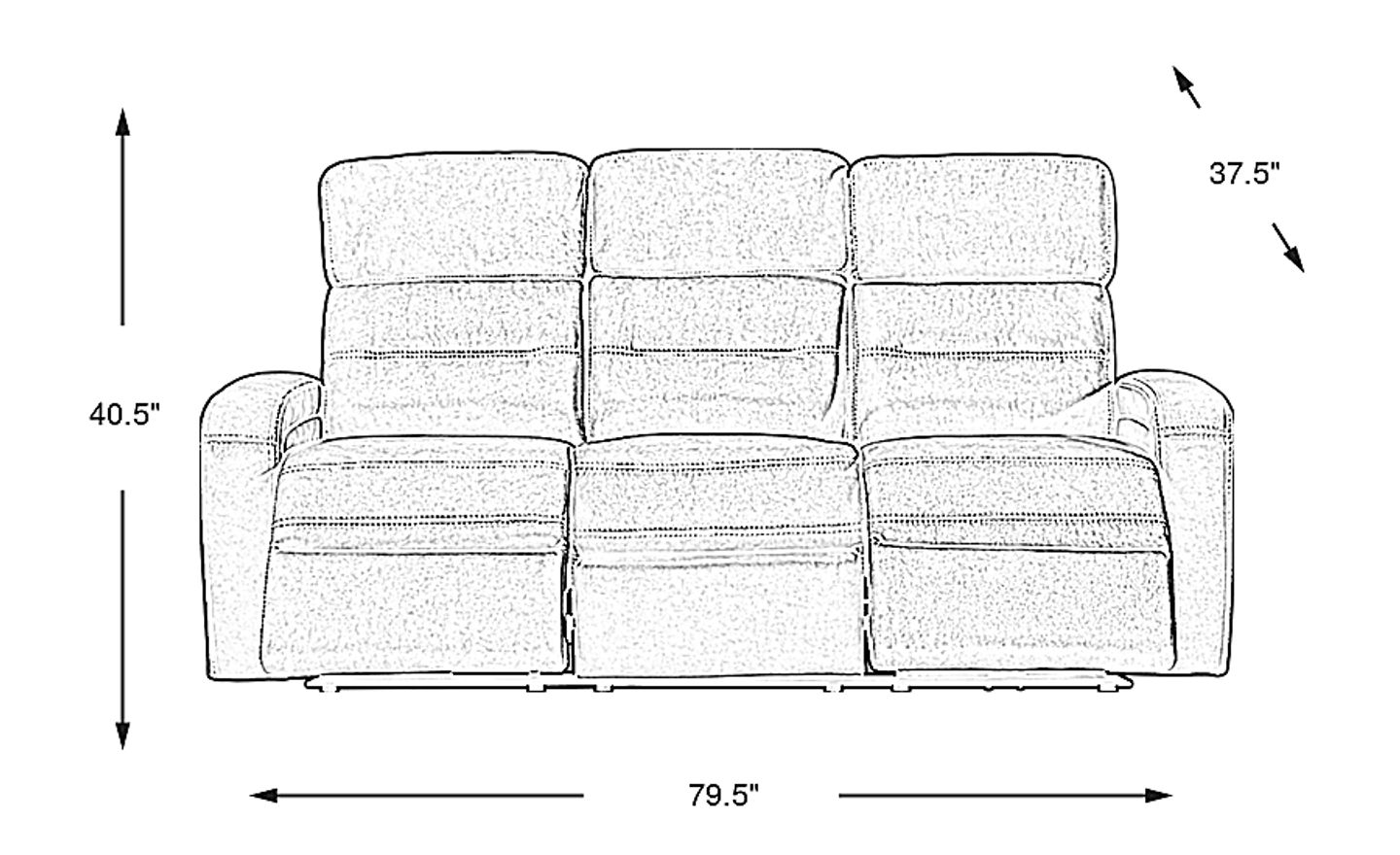 The Sierra Madre Dual Power Reclining Sofa measures 79.5 inches wide, 37.5 inches deep, and 40.5 inches high. Its "sized-right" design makes it particularly suitable for smaller rooms, allowing you to enjoy spacious seating without sacrificing valuable living area. With a seating capacity for three and three seat cushions, it offers ample comfort while fitting efficiently into more compact layouts.