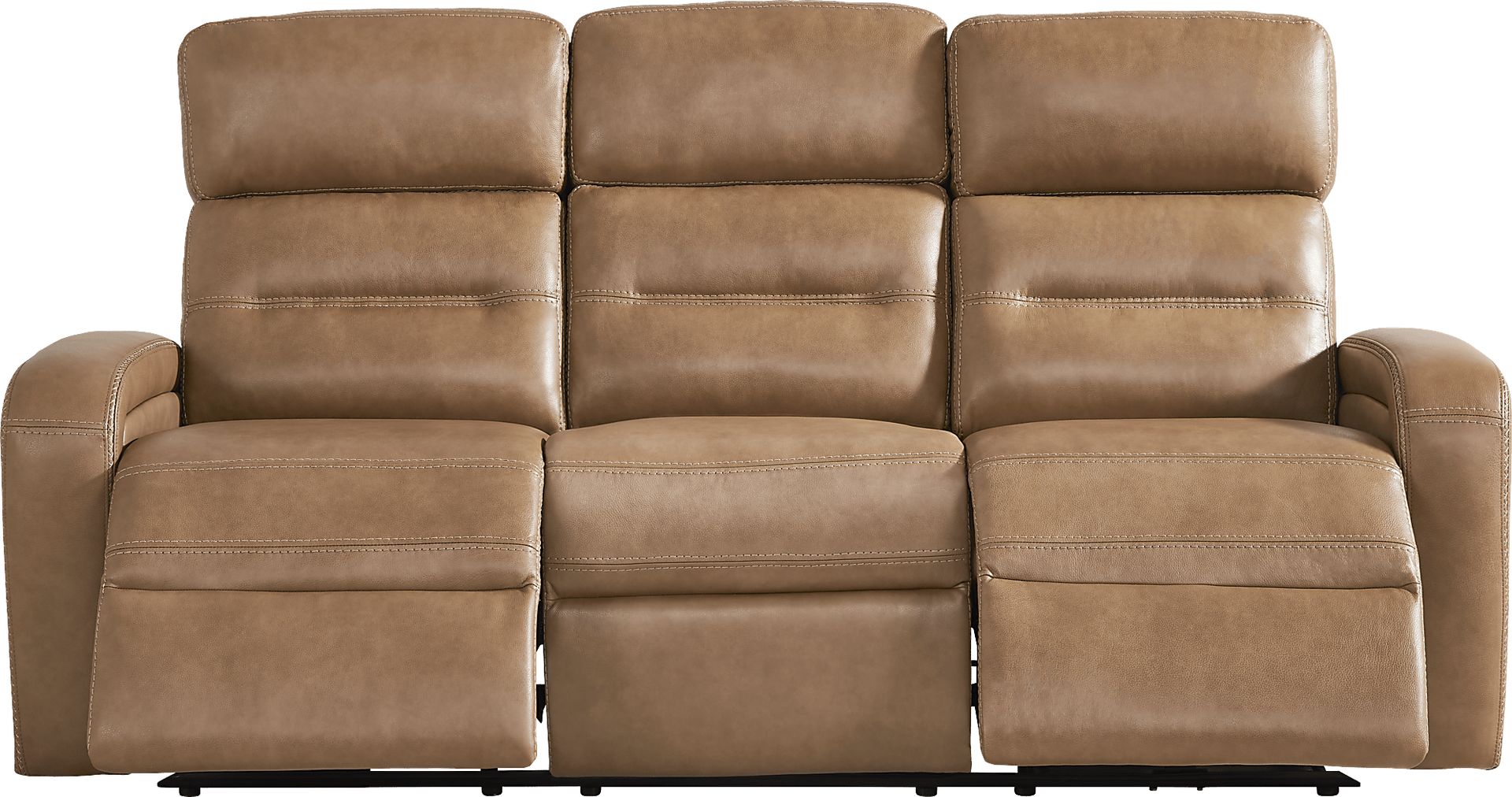Make the most of your down time with the premium features found on the Sierra Madre dual power sofa. At the touch of a button you can adjust the headrest and footrest to find just the right position for maximum relaxation. Sized-right too, this spacious sofa easily fits in smaller rooms so you don't have to sacrifice space for comfort. Saddle brown top grain leather upholstery where the body touches offers a supple feel and luxurious comfort while the padded headrest and padover chaise footrest provide full body support. A USB port located on each side of the sofa allows for easy charging of any mobile device. Baseball stitching details lends a high-quality finishing touch. Upholstery: Top grain leather where the body touches and polyurethane fabric sides and backs.