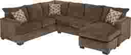 A sleekly designed seat, the Sierra View sectional creates a contemporary and cozy place to relax. Upholstered in a divinely plush chenille fabric in a rich shade of cocoa brown, this sectional features tight slip over arms, reversible seat cushions, and sumptuous seating perfect for lounging. Included accent pillows offer a colorful splash of brown, blue and beige. Chenille fabric 100% polyester