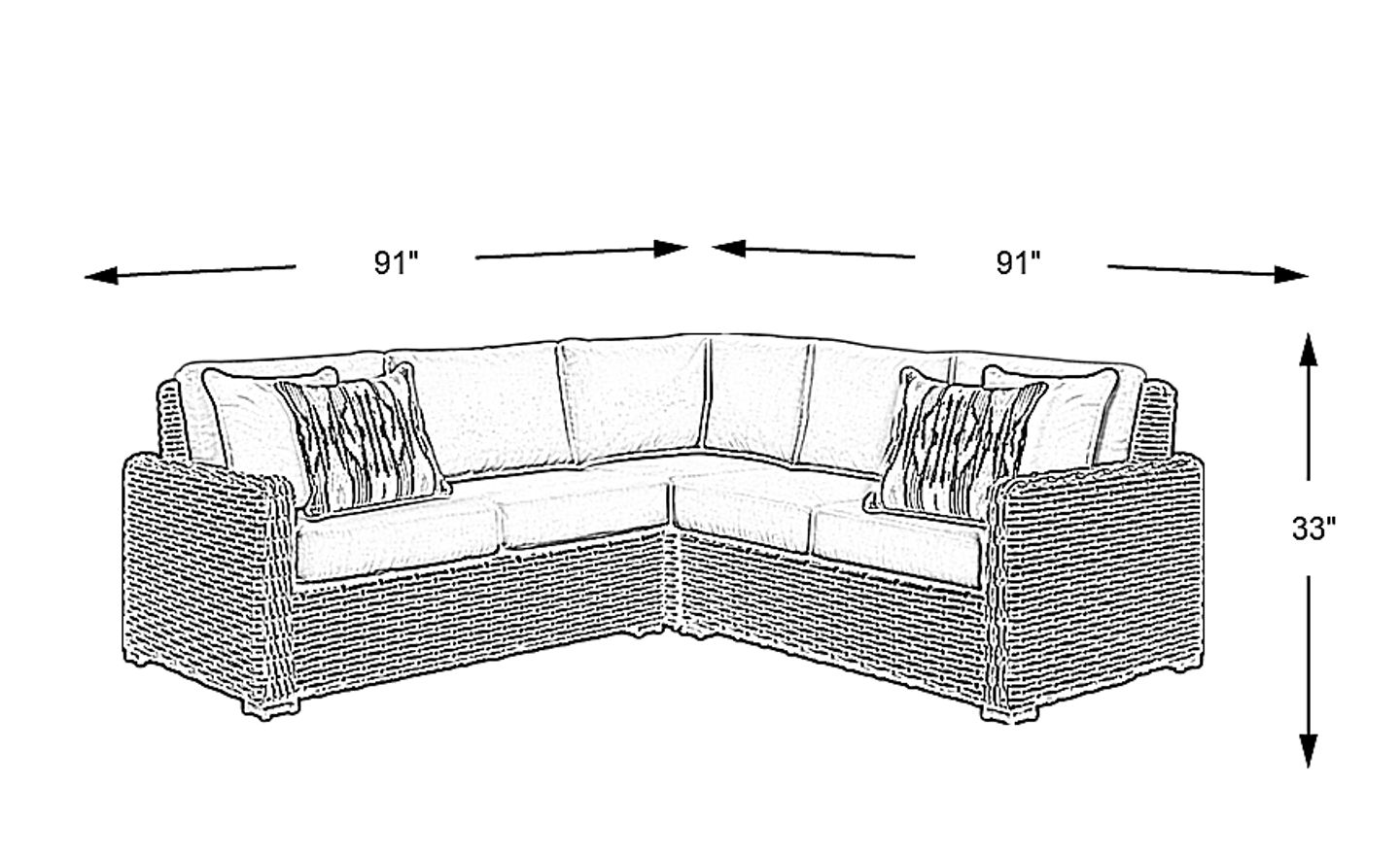 91"w"w x 91"d"d x 33"h"h