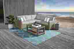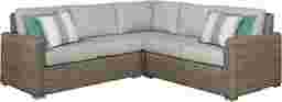 The Siesta Key sectional provides ample seating so the whole family can enjoy your beautiful patio space. Constructed from large weave all-weather woven wicker in a driftwood finish for a tropical feel steeped in casual comfort, a rust-resistant powder coated aluminum frame creates durability. Mist blue-gray colored cushions are UV resistant and sturdy, providing a beautiful look. Four decorative toss pillows add the perfect accent.