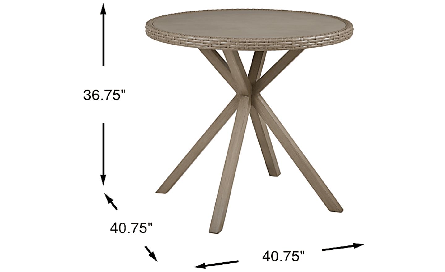 Whether used poolside or patio, the Siesta Key balcony height table is perfect for relaxing outdoor meals and refreshments. Exceptional all-weather woven wicker weave in a driftwood finish is complemented by a 40" aluminum top and angled legs.