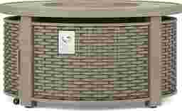 Siesta Key Driftwood Finish 5 Pc Outdoor Fire Pit Chat Set with Desert Cushions