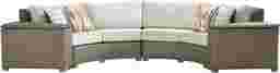 Siesta Key Driftwood Finish 4 Pc Outdoor Curved Sectional With Desert Cushions