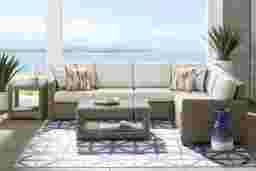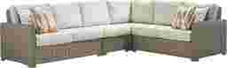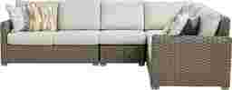 The Siesta Key sectional provides ample seating so the whole family can enjoy your beautiful patio space. Constructed from large weave all-weather woven wicker in a driftwood finish for a tropical feel steeped in casual comfort, a rust-resistant powder coated aluminum frame creates durability. Desert beige cushions are UV resistant and sturdy, providing a beautiful look. Four decorative toss pillows add the perfect accent. Select cushion colors also available in Sunbrella fabric.