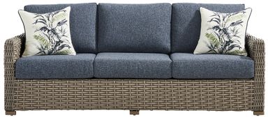 The Siesta Key sectional provides ample seating so the whole family can enjoy your beautiful patio space. Constructed from large weave all-weather woven wicker in a driftwood finish for a tropical feel steeped in casual comfort, a rust-resistant powder coated aluminum frame creates durability. Inky blue cushions are UV resistant and sturdy, providing a beautiful look. Four decorative toss pillows add the perfect accent. Select cushion colors also available in Sunbrella fabric.