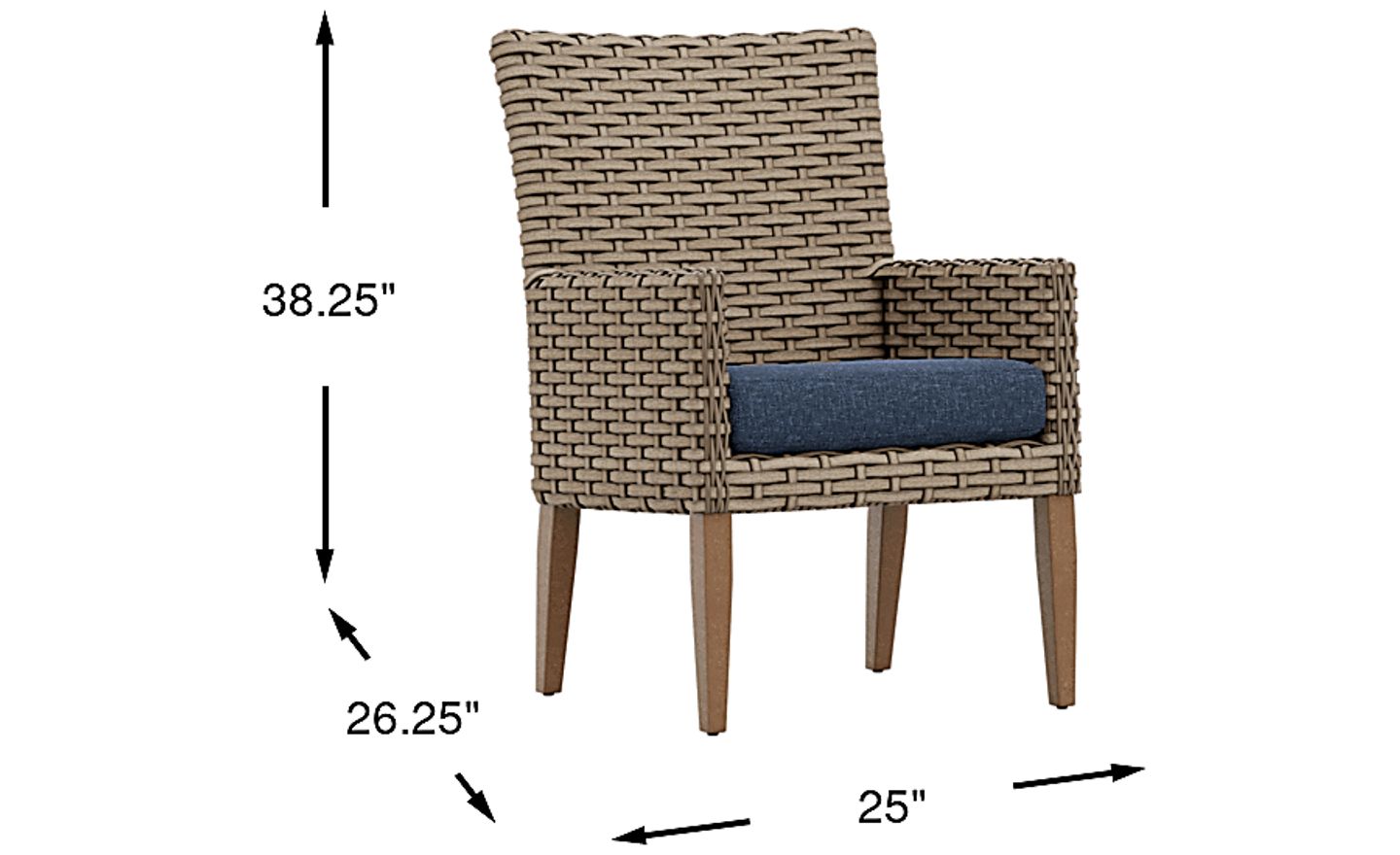 Offering each diner a comfortable cushioned seat in UV-resistant inky blue, the Siesta Key side chair makes a delightful addition to your outdoor dining table. Crafted from large weave all-weather wicker in a driftwood-colored finish for a casual tropical touch, a rust-resistant powder coated aluminum frame creates durability.