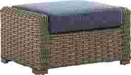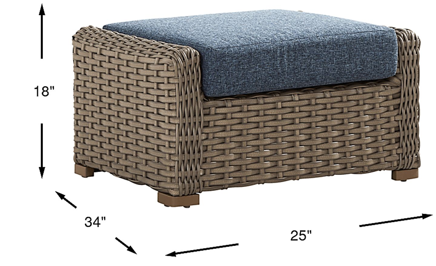 Make your patio even more comfortable with the Siesta Key ottoman. Ideal as an extra seat too, this accent is made with a durable rust-resistant powder coated aluminum frame and large weave all-weather wicker in a driftwood finish. This ottoman is topped with a UV-resistant outdoor cushion in inky blue.