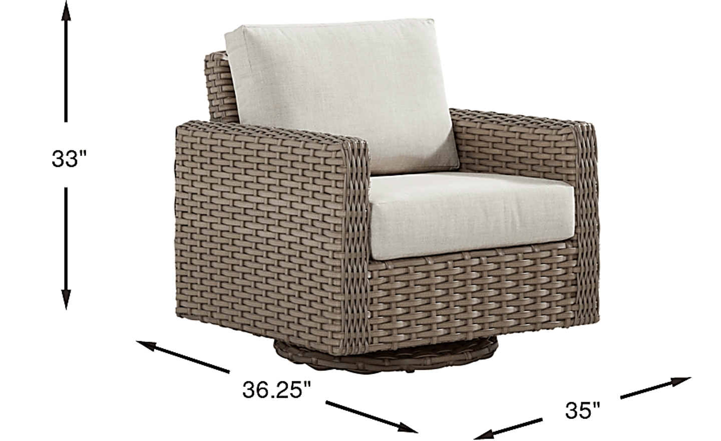 With its relaxing tropical vibe and beautiful large weave all-weather wicker construction, the Siesta Key swivel chair is meant for outdoor relaxation. Soak up the sun or relax with a good book in its deep desert beige seat. Each cushion is durable and UV-resistant. Crafted over a rust-resistant powder coated aluminum frame for durability, it's easy to move it wherever it catches the best rays.
