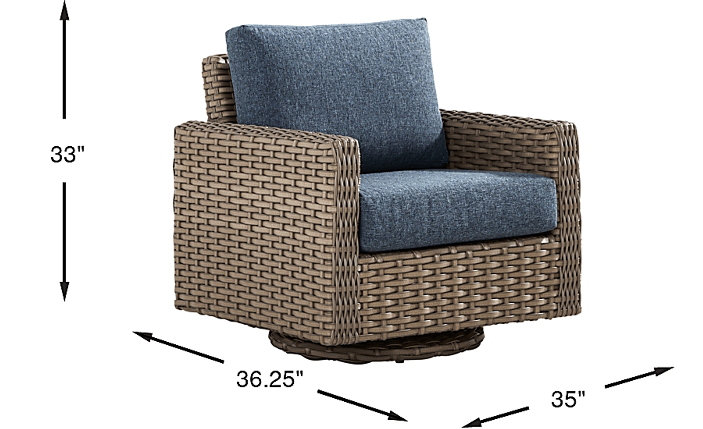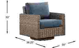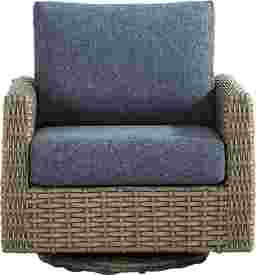 With its relaxing tropical vibe and beautiful large weave all-weather wicker construction, the Siesta Key swivel chair is meant for outdoor relaxation. Soak up the sun or relax with a good book in its deep inky blue seat. Each cushion is durable and UV-resistant. Crafted over a rust-resistant powder coated aluminum frame for durability, it's easy to move it wherever it catches the best rays.