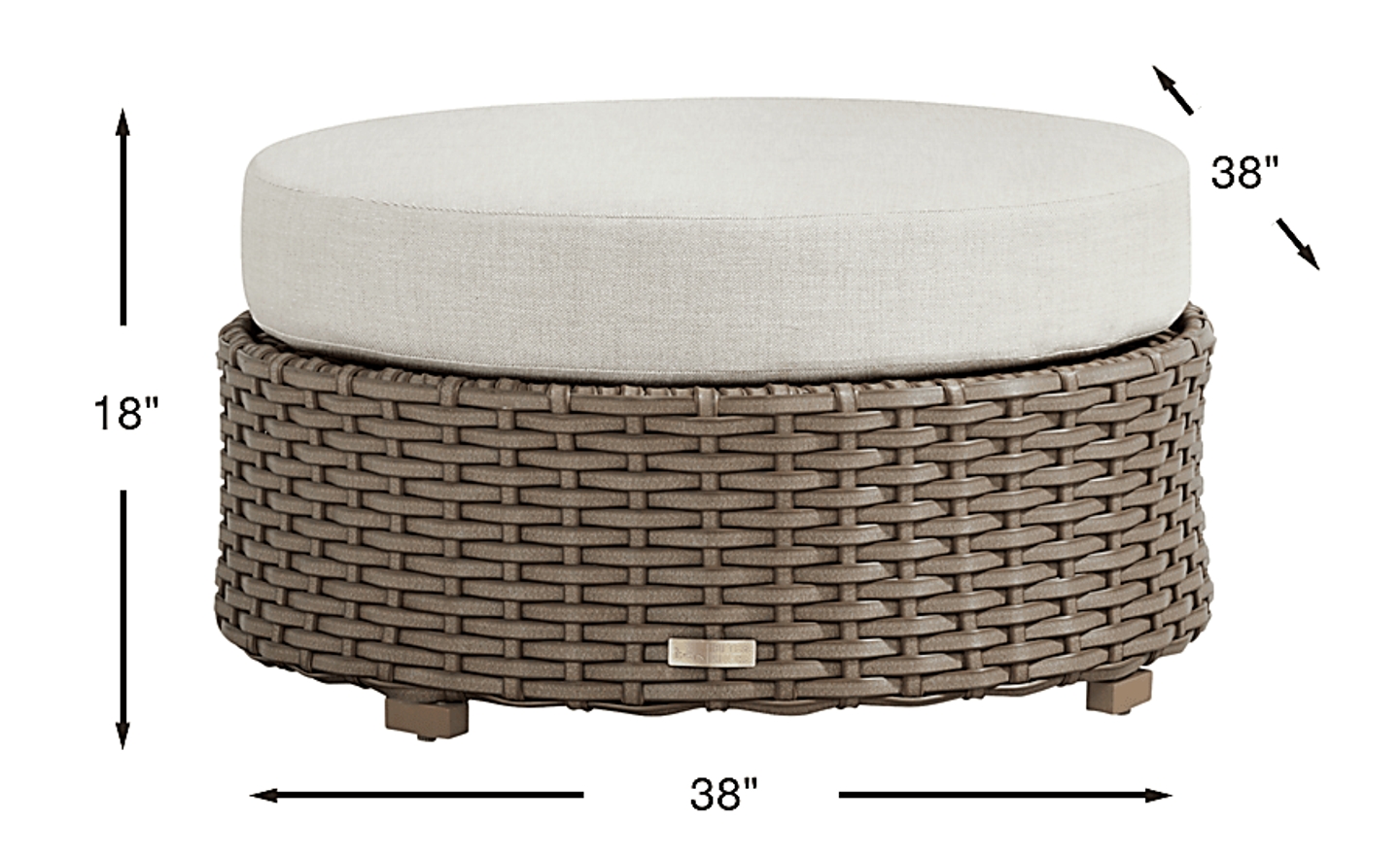With a 38-inch diameter, this ottoman is a substantial piece that provides a generous surface for lounging. While it is perfect for larger "chat sets" or sectionals, we recommend measuring your space carefully for a small balcony to ensure you have at least 18-24 inches of clearance around the item for easy movement. Its round shape is particularly effective in tighter layouts as it lacks sharp corners, helping to maintain an airy and open feel.