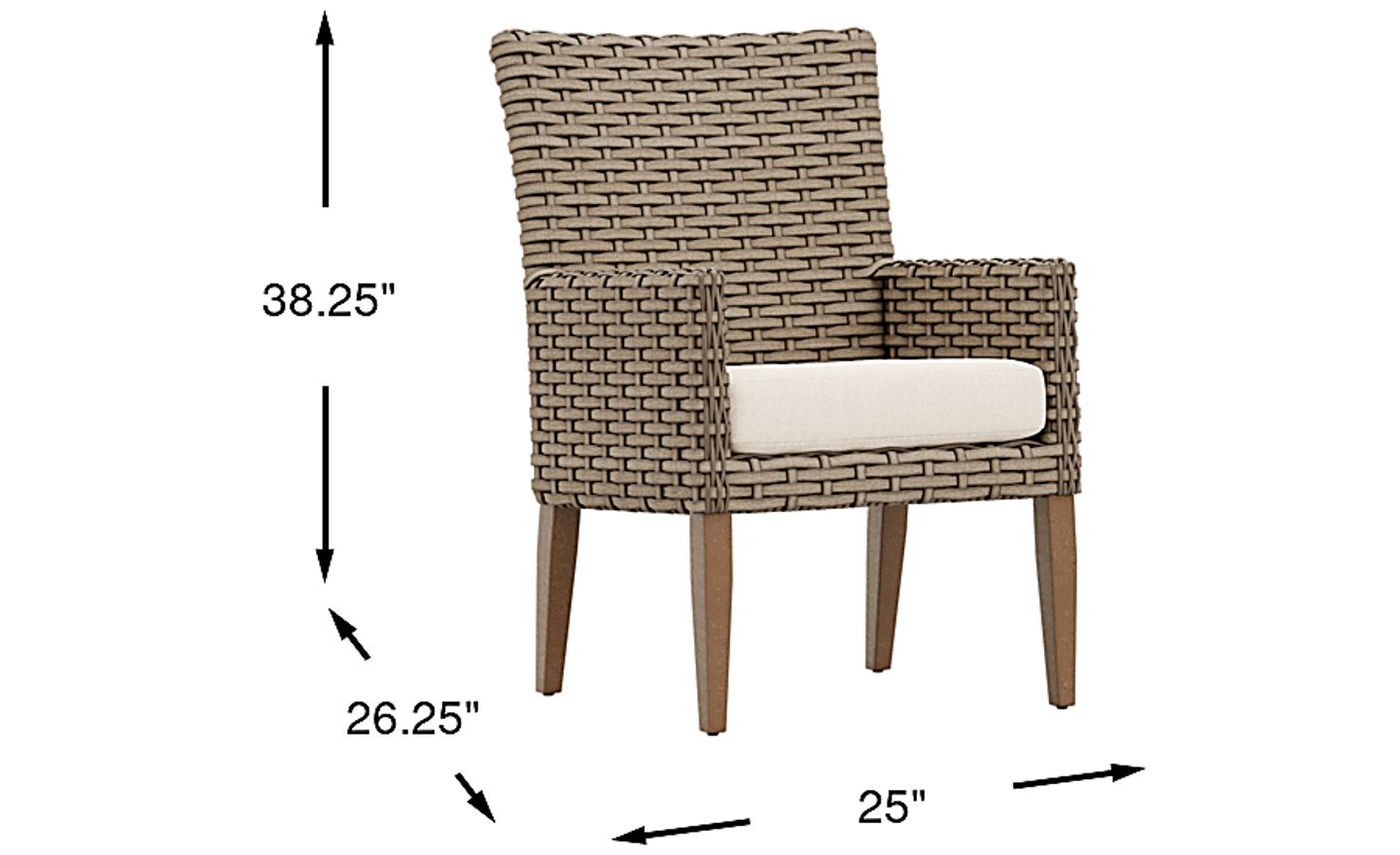 Offering each diner a comfortable cushioned seat in UV-resistant desert beige, the Siesta Key side chair makes a delightful addition to your outdoor dining table. Crafted from large weave all-weather wicker in a driftwood-colored finish for a casual tropical touch, a rust-resistant powder coated aluminum frame creates durability.