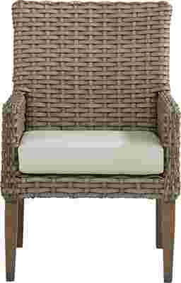 Cushioning each diner with a comfortable padded mist cushion that is UV resistant, the Siesta Key arm chair makes a delightful addition to your outdoor dining table. Crafted from large weave all-weather woven wicker for a casual tropical touch, a rust-resistant powder coated aluminum frame with supportive arms creates durability.