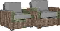 The Siesta Key chair, offered in a set of two, add casual comfort to your outdoor space. Large weave all-weather construction, padded mist blue-gray colored Sunbrella cushions, and a tropical feel will have you relaxed and enjoying your patio in no time. Soak up the sun or relax with a good book in its deep seat; each comfortable cushion is resistant to UV rays. Crafted over a rust-resistant powder coated aluminum frame for durability, you can move the chairs wherever they catch the best rays. To clean Sunbrella fabric cushions remove dirt and spray on cleaning solution (water and mild soap), then use a soft bristle brush or sponge. Allow cleaning solution to soak into fabric and rinse thoroughly until soap residue is removed. Air dry. Do not dry clean.