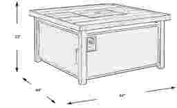 Enjoy the great outdoors any time of year with the Siesta Key fire pit. This 44 inch square fire pit features a lid and plank style top. The fire pit uses a standard propane tank with 60,000 BTU (not included). Fire glass comes with the unit, however this fire pit is also compatible with lava rocks (not included).