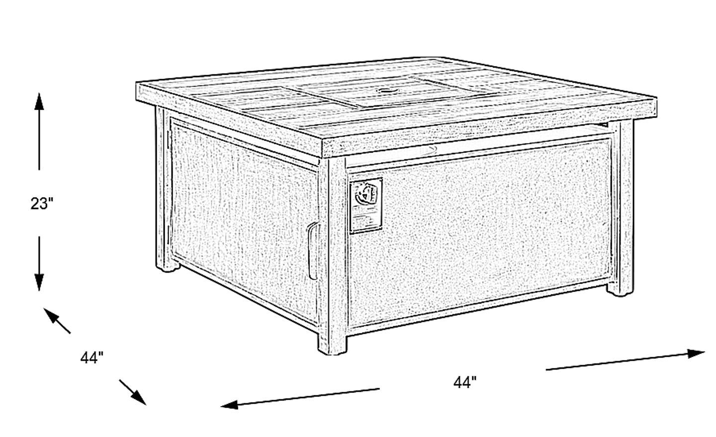 Enjoy the great outdoors any time of year with the Siesta Key fire pit. This 44 inch square fire pit features a lid and plank style top. The fire pit uses a standard propane tank with 60,000 BTU (not included). Fire glass comes with the unit, however this fire pit is also compatible with lava rocks (not included).