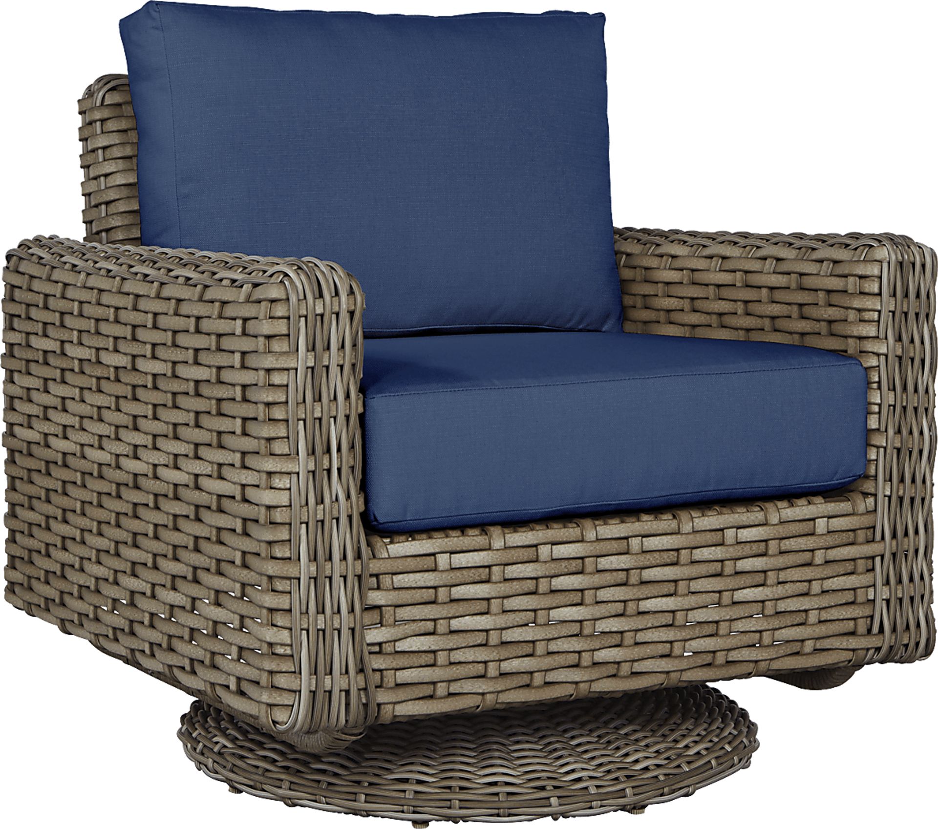 Siesta Key Driftwood Outdoor Swivel Chair With Indigo Cushions