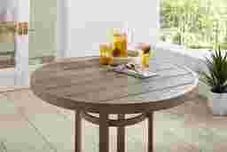Whether you're enjoying a drink poolside or serving up midday bites on your patio, the Siesta Key bar height table is perfect for entertaining outdoors. Crafted of aluminum in an aged gray finish, this table features plank-style details on the top with outwardly sloping legs. An umbrella hole at the center of the 30" round table can be capped when not in use.