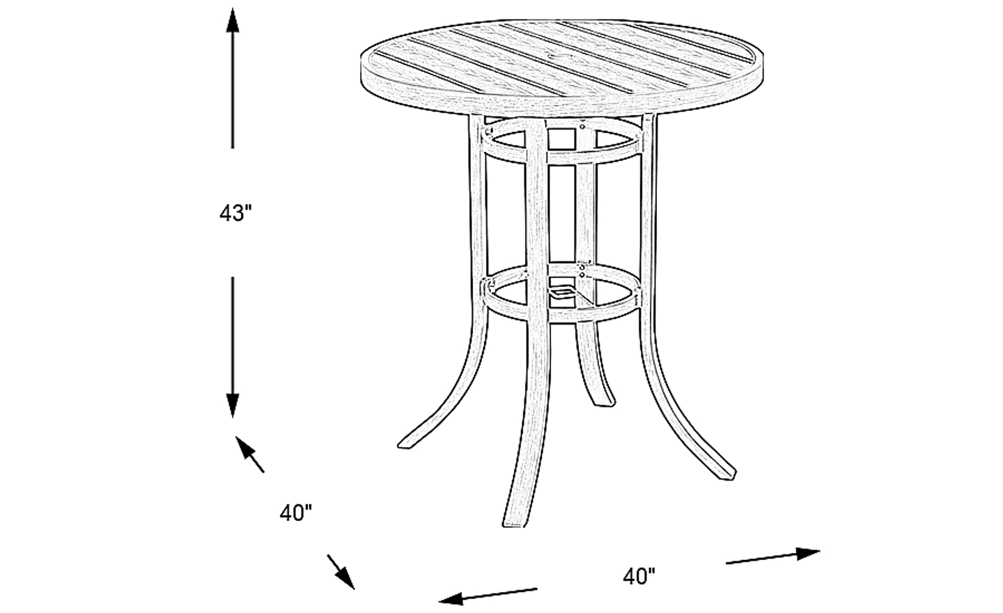 Whether you're enjoying a drink poolside or serving up midday bites on your patio, the Siesta Key bar height table is perfect for entertaining outdoors. Crafted of aluminum in an aged gray finish, this table features plank-style details on the top with outwardly sloping legs. An umbrella hole at the center of the 40" round table can be capped when not in use.