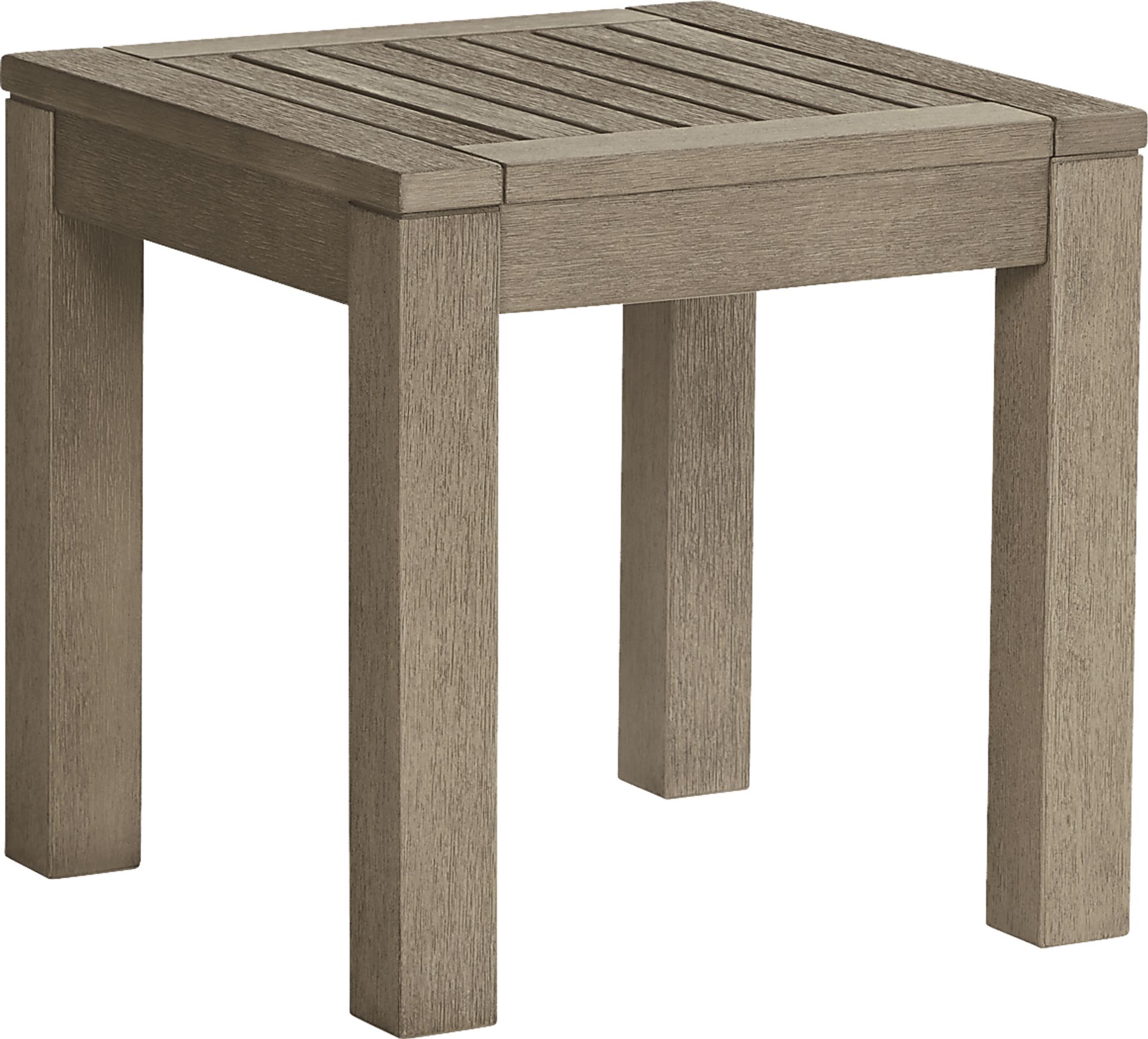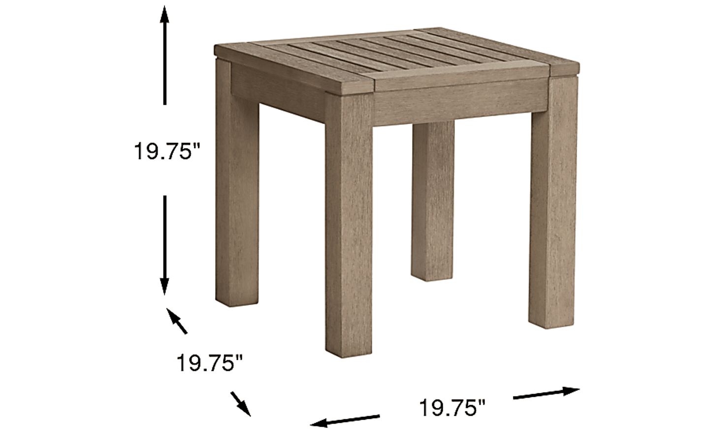 A wonderful companion for your outdoor seating, the Siesta Key end table is the ideal spot for refreshments or sunscreen. Eucalyptus construction makes the 20-inch square plank style top and straight legs durable.